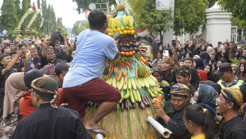 BLORA (wartablora.com)—Masyarakat Blora tengah merayakan ulang tahun kabupatennya ke-276 pada Kamis, 11 Desember 2025. Perayaan ini dimeriahkan dengan grebeg gunungan yang dilangsungkan di sepanjang Jalan Pemuda Kota Blora pada pagi hari. Ribuan penduduk Kota Blora tumpah ruah di sepanjang jalan tersebut, berebut jajanan yang disusun seperti gunungan. Grebeg gunungan ini menjadi tradisi dalam merayakan hari jadi Kabupaten Blora dalam beberapa tahun terakhir.
